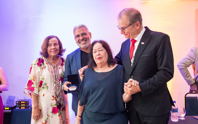 A solenidade teve início com a formação da mesa de autoridades e, na sequência, um dos momentos mais simbólicos da noite: a entrega da Medalha Paulo Dantas, instituída pelo COSEMS-PE como forma de reconhecimento aos que colaboram e dedicam suas trajetórias ao fortalecimento da saúde pública em Pernambuco.