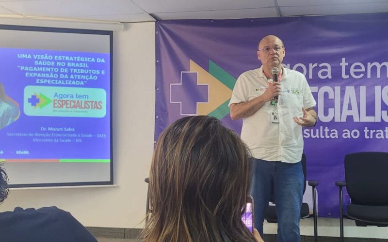 Durante sua apresentação, o secretário de Atenção Especializada à Saúde do Ministério da Saúde (SAES/MS), Dr. Mozart Júlio Tabosa Sales, destacou a necessidade de acelerar o acesso da população aos serviços especializados, afirmando que a perspectiva do Ministério é destinar recursos adicionais para consultas, procedimentos e cirurgias que muitas vezes enfrentam longas filas de espera. “Vamos aproveitar para discutir com os secretários municipais e com a sociedade civil a perspectiva de colocar recursos adicionais para o atendimento de consultas especializadas, procedimentos e cirurgias, que às vezes acabam demorando bastante. A ideia é diminuir a espera dentro do programa Agora Tem Especialistas, que é algo novo e precisa ser debatido com profundidade”, afirmou.